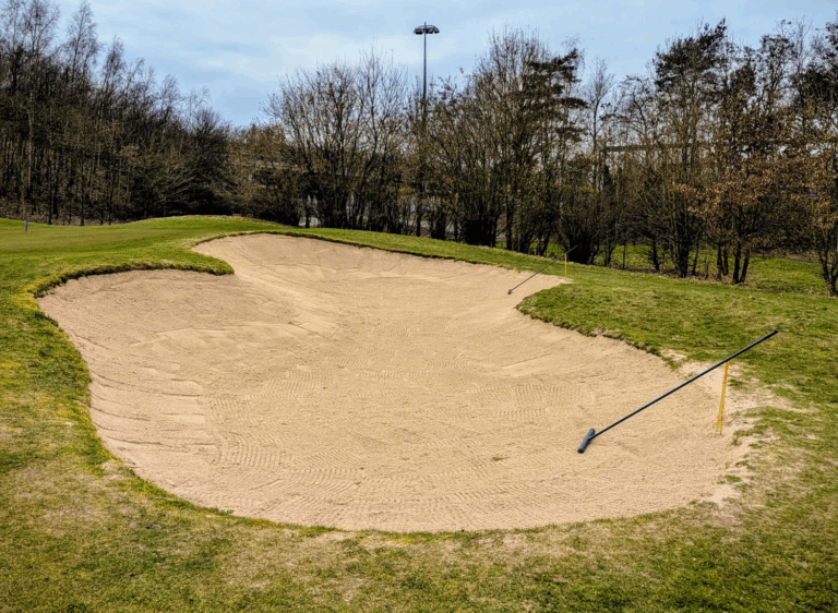Ook de bunkers hebben een flinke beurt gekregen. De randen zijn weer netjes afgestoken en waar nodig is het bunkerzand aangevuld. De meeste bunkers zien er nu weer goed uit en dat willen we natuurlijk graag zo houden. Daarom het nadrukkelijke verzoek om alleen via de lage kant in én uit de bunker te stappen en het bunkerzand even aan te harken na het spelen van de bal. Let er op dat je bij het harken het zand in de bunker houdt en niet over de rand veegt. Dat voorkomt het ontstaan van ‘strandjes’ rondom de bunkers.