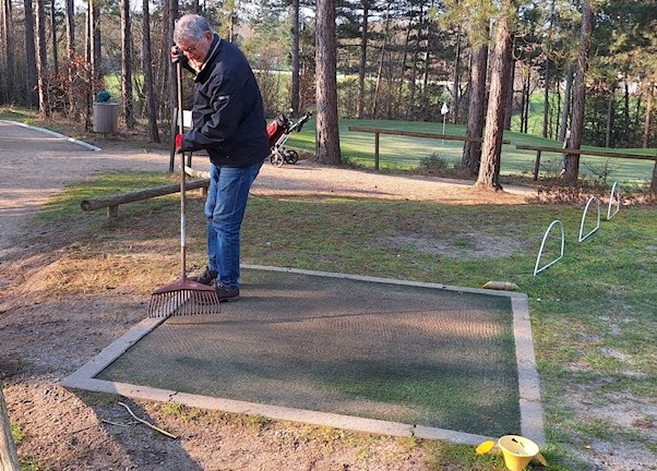 Ondertussen zijn we druk bezig om de baan voor de start van het seizoen (zaterdag 28 maart) in topconditie te brengen. Begin maart zijn alle greens en tees geprikt en gezand en met deze weersomstandigheden kan het gras weer goed gaan groeien. We zullen nog wel even vanaf de wintermatten blijven afslaan omdat het gras op veel tees nog erg dun is. Bij wedstrijden proberen we wel van de grastees af te slaan.