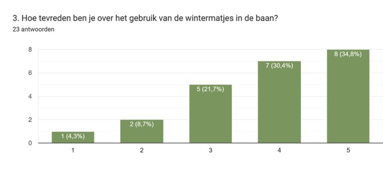 De proef met de wintermatjes is succesvol verlopen en afgerond. Ongeveer 30 leden hebben zich aangemeld om mee te doen en daarvan heeft het merendeel de moeite genomen om een korte vragenlijst in te vullen. De belangrijkste uitkomsten zijn de volgende: