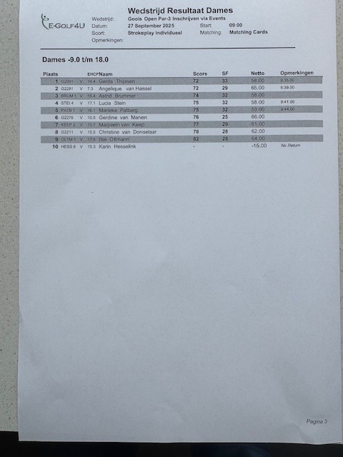 Namens de commissie ’t Goois Open Par-3 Kampioenschap 2025 – Aldie Hamming.