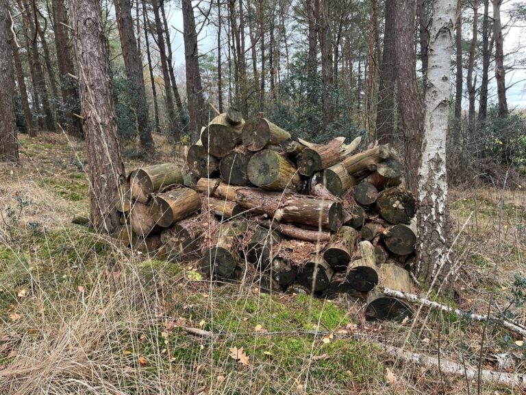 De gekapte bomen worden in stukken gezaagd maar niet afgevoerd. Een houtstapel biedt onderdak en voedsel aan tal van dieren. Het groenteam stapelt de houtblokken op plekken waar golfers er zo min mogelijk last van hebben.  Voorbeelden hiervan vind je onder andere op holes 2 en 3 van de Boschbaan.